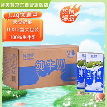鲜美赞全脂纯牛奶1Lx12盒整箱早餐奶家庭烘焙用大包装商用批发 非旋盖装