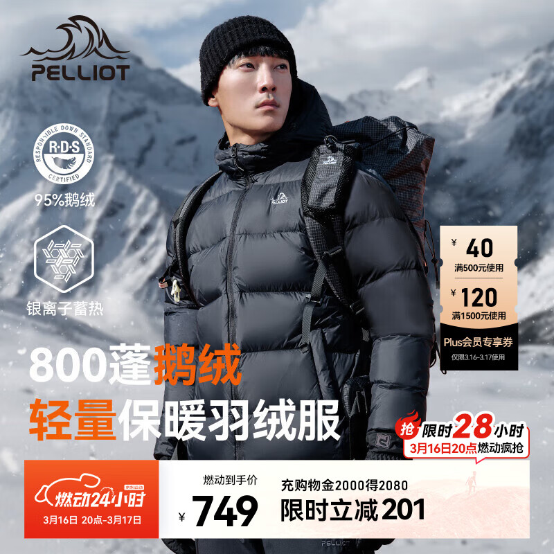 伯希和(Pelliot)【经典2.0】800蓬鹅绒羽绒服男女冬季保暖棉衣短款防风连帽外套 曜石黑【男款】 S