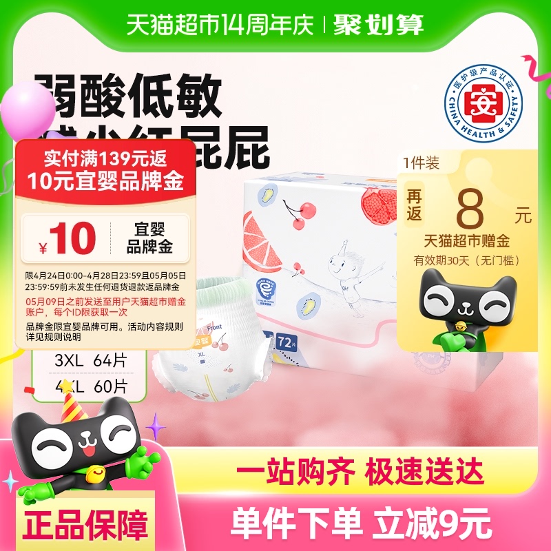 宜婴婴儿拉拉裤弱酸水果小内裤L-4XL超薄透气宝宝专用尿裤尿不湿