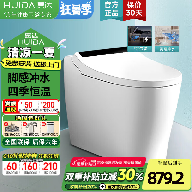 惠达(HUIDA)智能马桶脚感冲水座圈加热离座自动冲水坐便器 H15离座冲水|停电冲水|记忆节能 305/300mm (适用290-385mm)