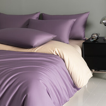 兰芮(Lanrui) 100支四件套纯棉透气亲肤新疆长绒棉贡缎被套床单枕套全棉套件 优雅紫 200*230cm四件套(1.5/1.8m床)