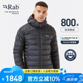 Rab 【断货王】男款800篷欧洲鹅绒羽绒服连帽保暖透气523g QDN-85 碳黑色 L