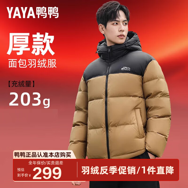 鸭鸭(YAYA)羽绒服男短款连帽面包服2024年新款休闲保暖加厚极寒冬季外套ZL YE4B703212F-秋叶黄色 2XL /185