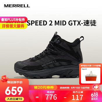 迈乐(Merrell)MOAB SPEED 2 MID GTX户外中帮男女款防水防滑轻量越野跑徒步鞋 J037501黑色 男 41