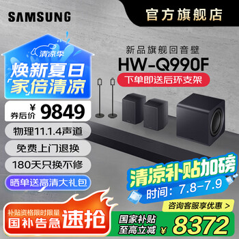 三星【国家补贴】新品音响HW-Q990F/XZ物理11.1.4杜比全景声回音壁无线环绕蓝牙投影家庭影院电视音箱 黑色