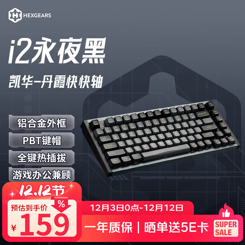 黑峡谷(Hyeku)i2 83键有线客制化机械游戏键盘热插拔电竞铝合金边框PBT键帽RGB键线分离 永夜黑 丹霞快快轴