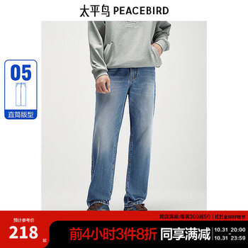 旗舰店太平鸟男装牛仔裤男24秋季新款宽松直筒牛仔裤潮牌双色水洗浅色全棉牛仔 普蓝色 第一批 32