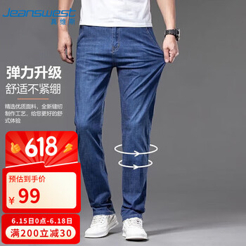 自营真维斯(JEANSWEST)牛仔裤男2025夏季薄款宽松直筒裤百搭男裤子休闲长裤蓝色34