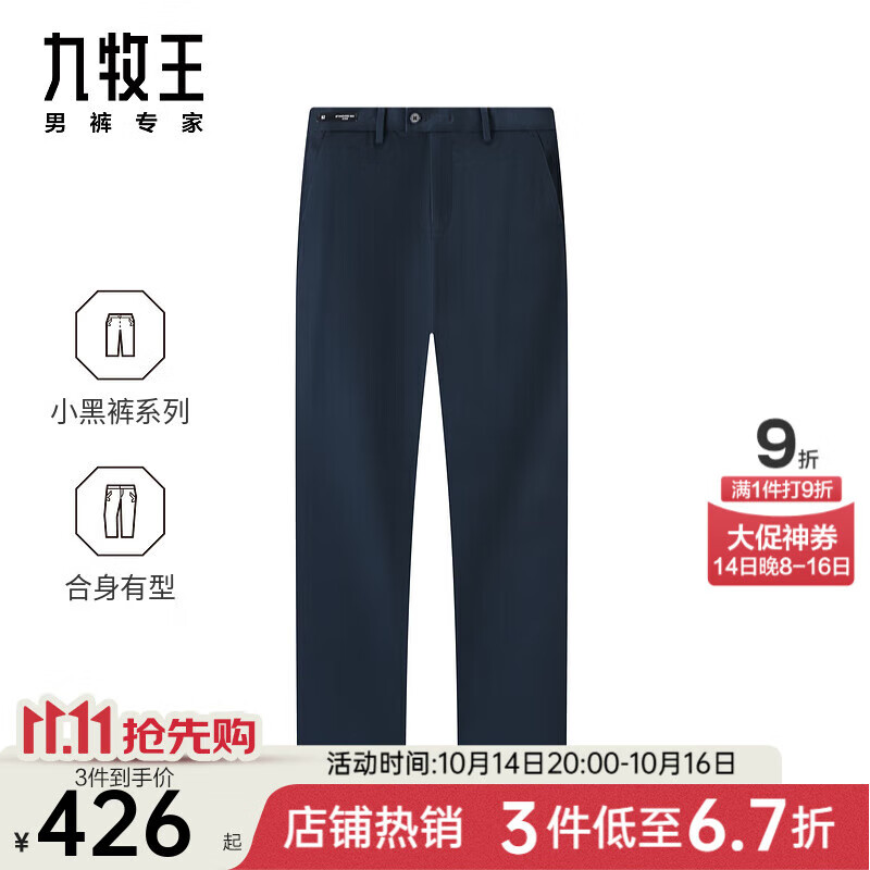 旗舰店九牧王(JOEONE)男裤休闲裤【小黑裤系列】男春高弹秋舒适经典休闲裤修身男士裤子 标准版+牛仔蓝+AB1CX71723 31 码170/78A(2.37)尺79cm