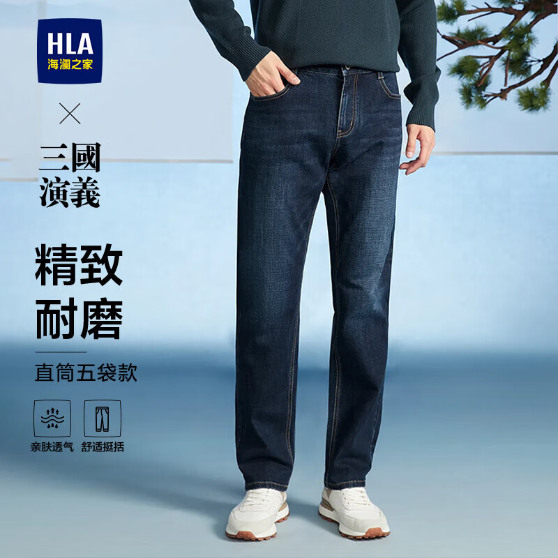 自营HLA海澜之家牛仔裤男三国演义直筒裤五袋款大码裤子男
