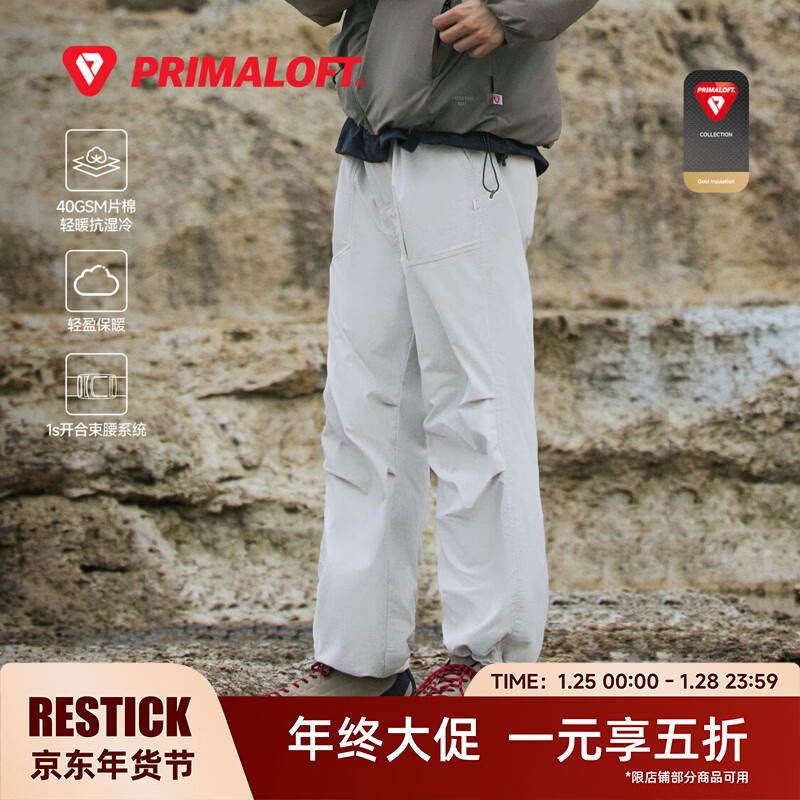 旗舰店RESTICK「金标P棉裤」机能加厚冲锋伞兵裤男冬季保暖工装长裤新年 灰白色 金标P棉 岩脊四面弹力面料 XL
