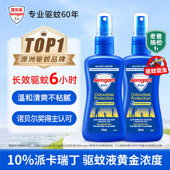 自营Aerogard澳乐家驱蚊液135ml*2 驱蚊喷雾驱蚊水户外防蚊儿童花露水派卡瑞丁