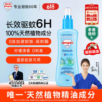 自营Aerogard澳乐家天然驱蚊喷雾175ml 驱蚊液花露水 户外神器儿童防蚊虫水