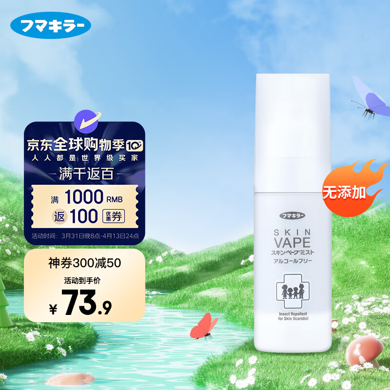 自营VAPE福马无添加驱蚊喷雾80ml户外便携驱蚊液儿童母婴敏感肌可用
