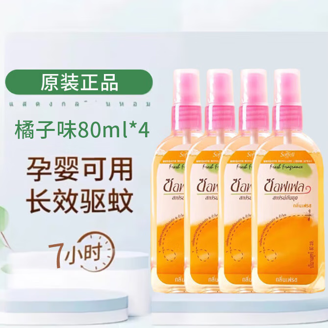 自营SOFFEL 泰国进口驱蚊水 长效驱蚊温和母婴防蚊 80ml*4瓶 防基孔肯雅热