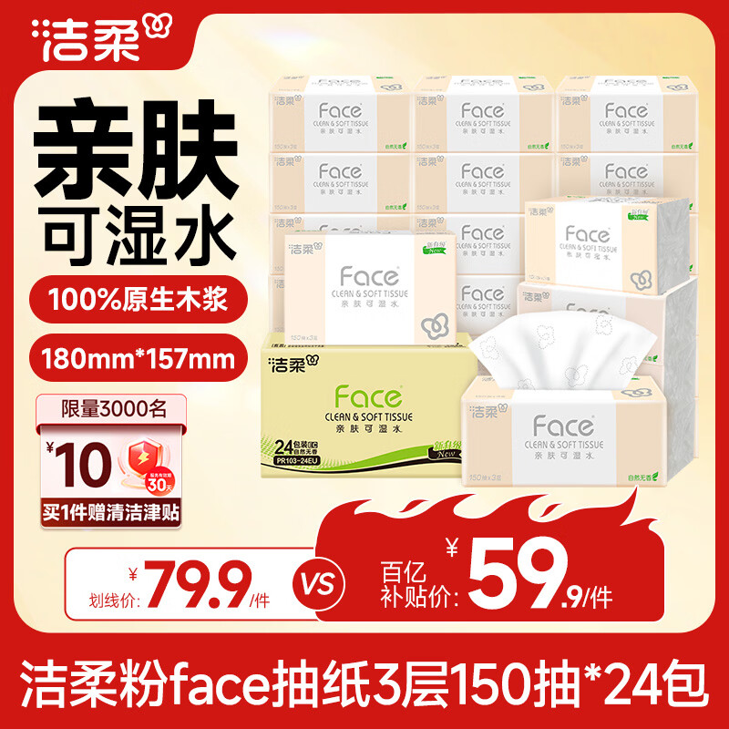 旗舰店洁柔Face抽纸3层150抽24包餐巾纸可湿水面巾纸家用纸巾用实惠装
