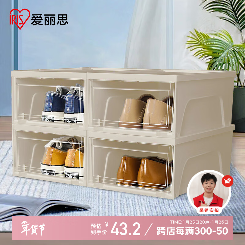 自营爱丽思(IRIS)鞋盒透明鞋柜防尘防潮鞋架前开式鞋子收纳盒收纳柜 4个装