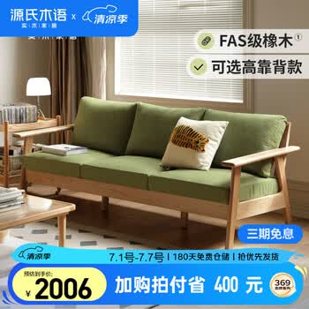 自营源氏木语布艺沙发日式小户型客厅实木沙发现代简约原木三人位沙发