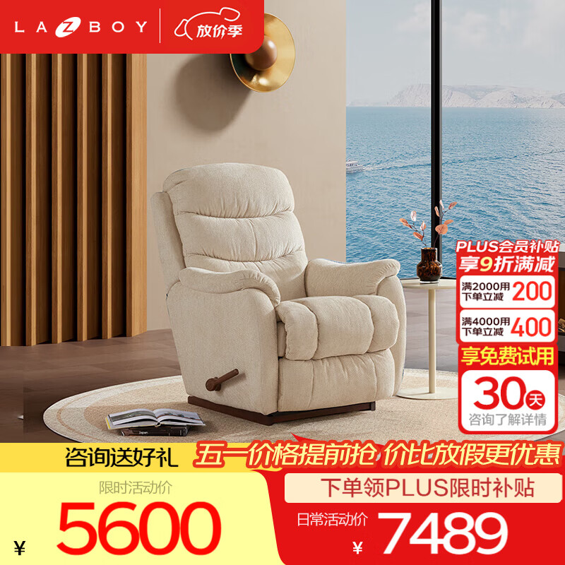 自营LAZBOY乐至宝进口系列凯撒绒布功能沙发客厅躺摇椅金0.89m美式【7天】