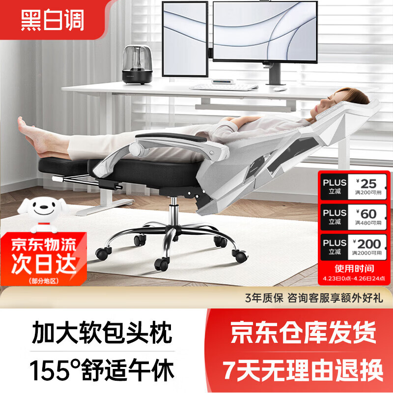 黑白调P4 Pro人体工学电脑椅子办公椅可躺午休椅 霜白色