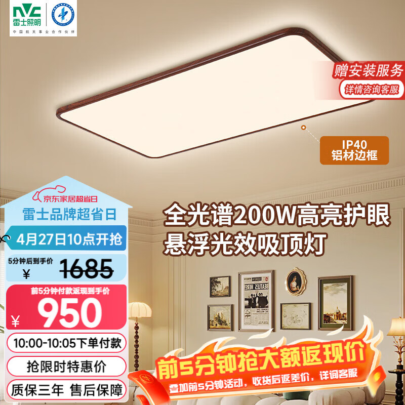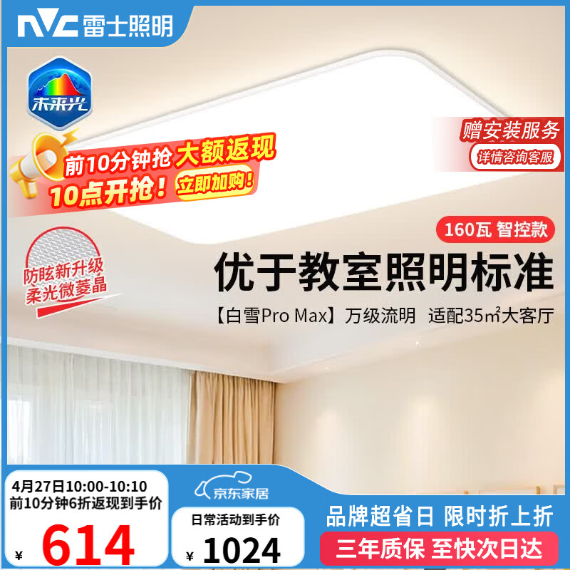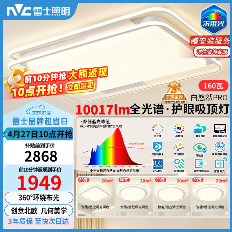自营雷士(NVC)吸顶灯客厅大灯主灯全光谱护眼卧室吸顶灯具未来光白雪PRO包安装