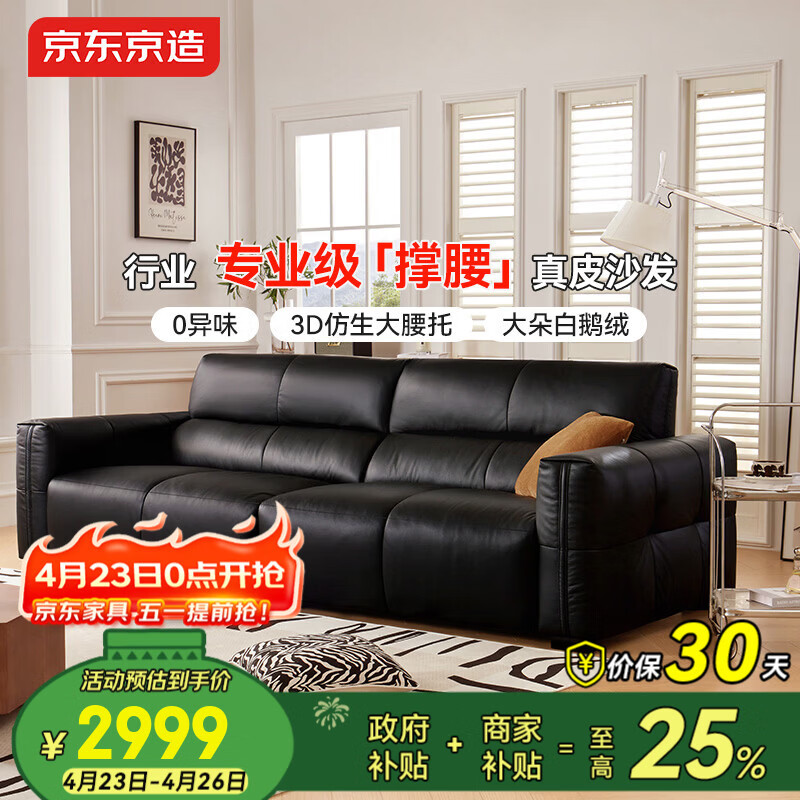 自营京东京造巨撑腰真皮沙发 人体工学坐靠系统头层牛皮客厅大户型2.86m