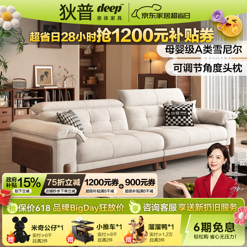 旗舰店狄普奶油中古风实木云朵布艺枫颂沙发政府补贴客厅雪尼尔可拆洗布沙发 2.2m:旗舰版5星坐感 保用20年 RM防猫抓绒布|5A级10防抗菌
