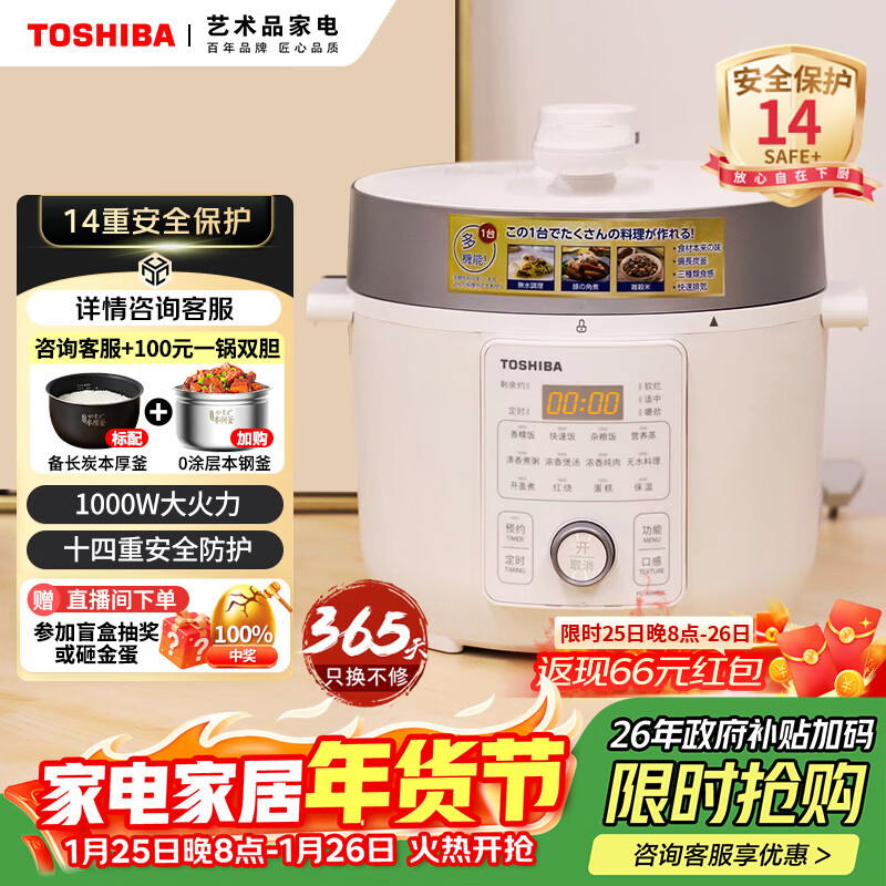自营东芝(TOSHIBA)14重安全保护智能安全电压力锅 家用电高压锅 电饭锅4-5人电饭煲高压电饭锅4.8L PC-48MRSC(W)