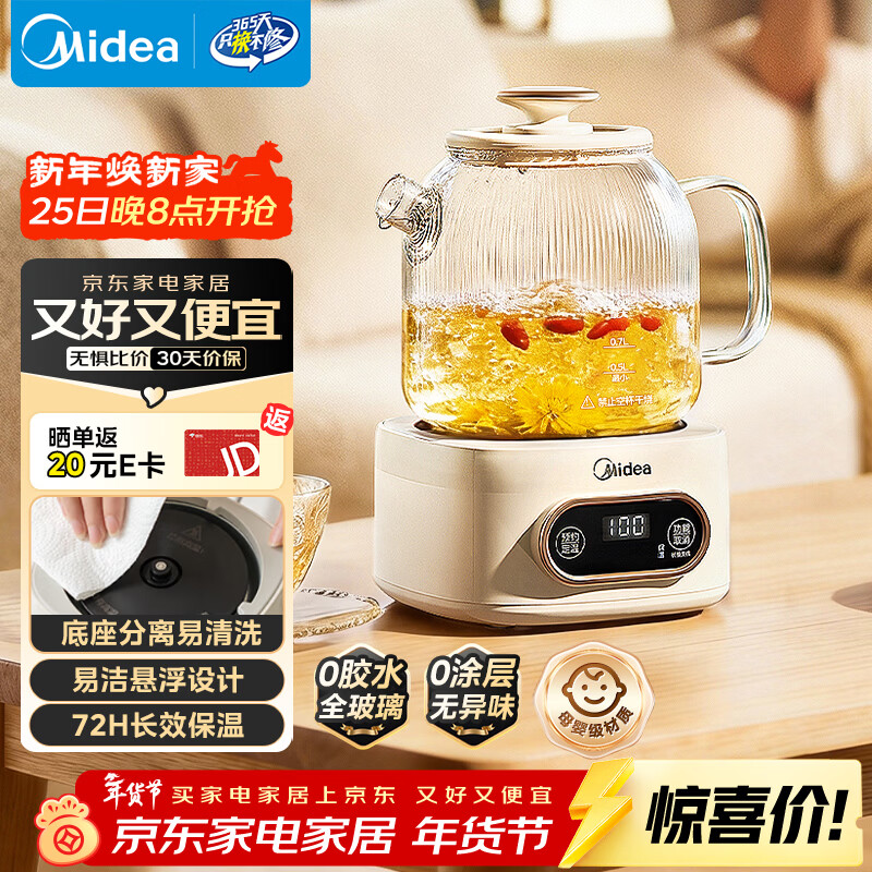 自营美的(Midea)花漾0胶水全玻璃全自动养生壶 办公室多功能煮茶壶 烧水壶恒温电热水壶煮茶器花茶壶1L YS10B101