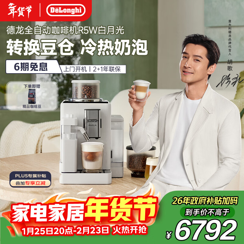 自营德龙(Delonghi)咖啡机 家用全自动咖啡机 进口意式小型现磨冷热奶泡智能互联全彩触屏可换豆仓R5 W白月光新年礼物