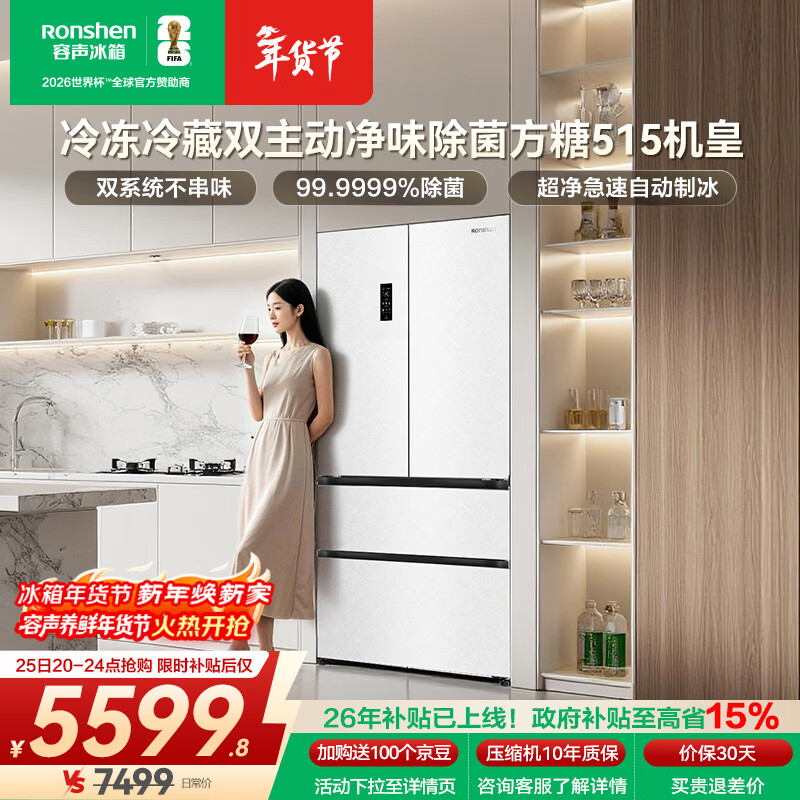 自营容声方糖515L机皇法式多门冰箱双系统超薄零嵌入式自动制冰一级能效白BCD-515P60FZNAD国家补贴世界杯