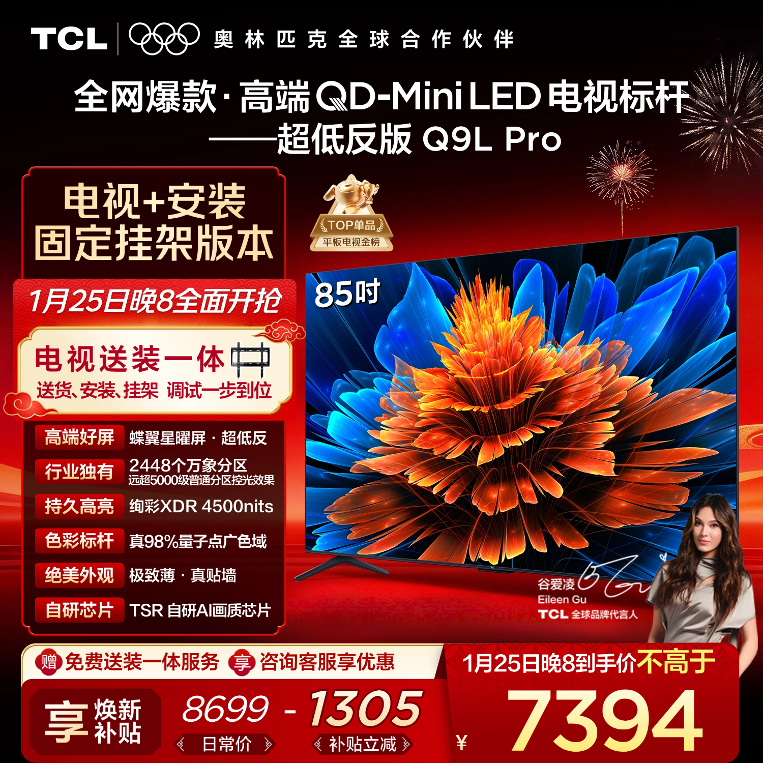 自营TCL 85Q9L Pro 包安装版【固定挂架送装一体】85英寸 QD-Mini LED电视 Q9L Pro 国家补贴