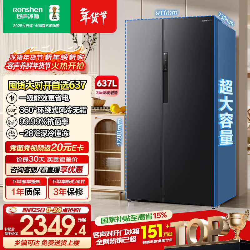 自营容声637L对开门冰箱超大容量家用一级能效风冷无霜双变频节能大冷冻以旧换新BCD-637WD11HP国家补贴