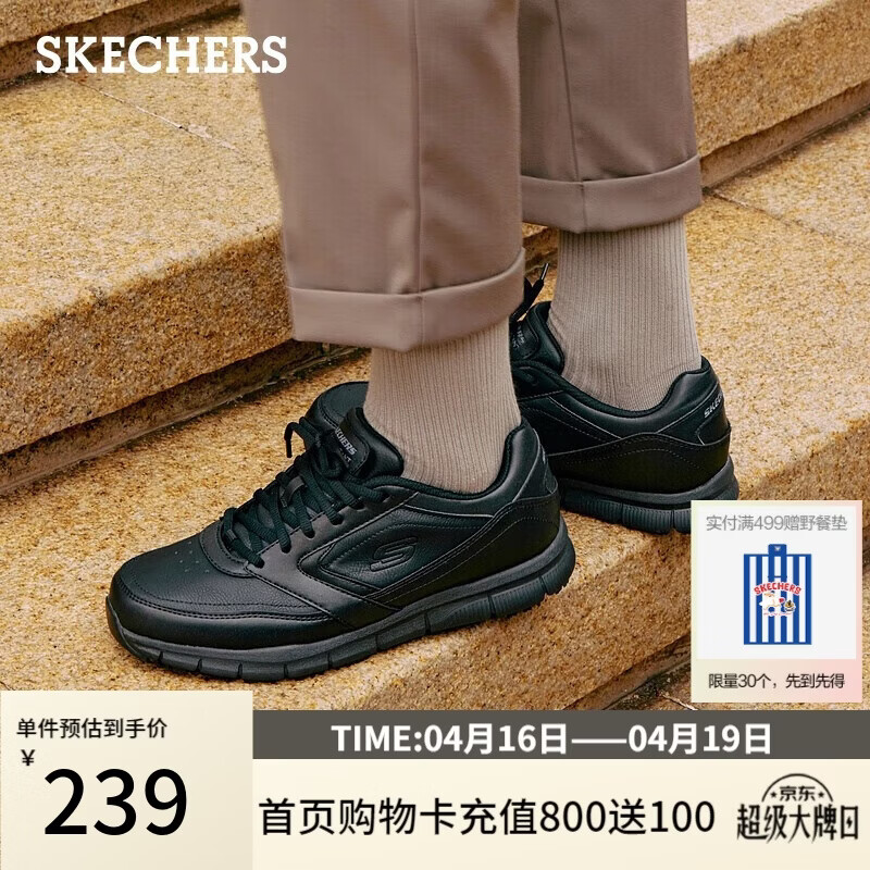 自营斯凯奇(Skechers)男士商务鞋春季厚底通勤板鞋休闲鞋软底舒适上班鞋77156