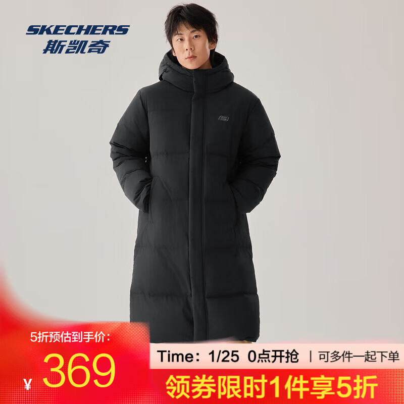 旗舰店斯凯奇(Skechers)长款三防羽绒服男女同款中性梭织加厚保暖羽绒外套 碳黑/0018 XL