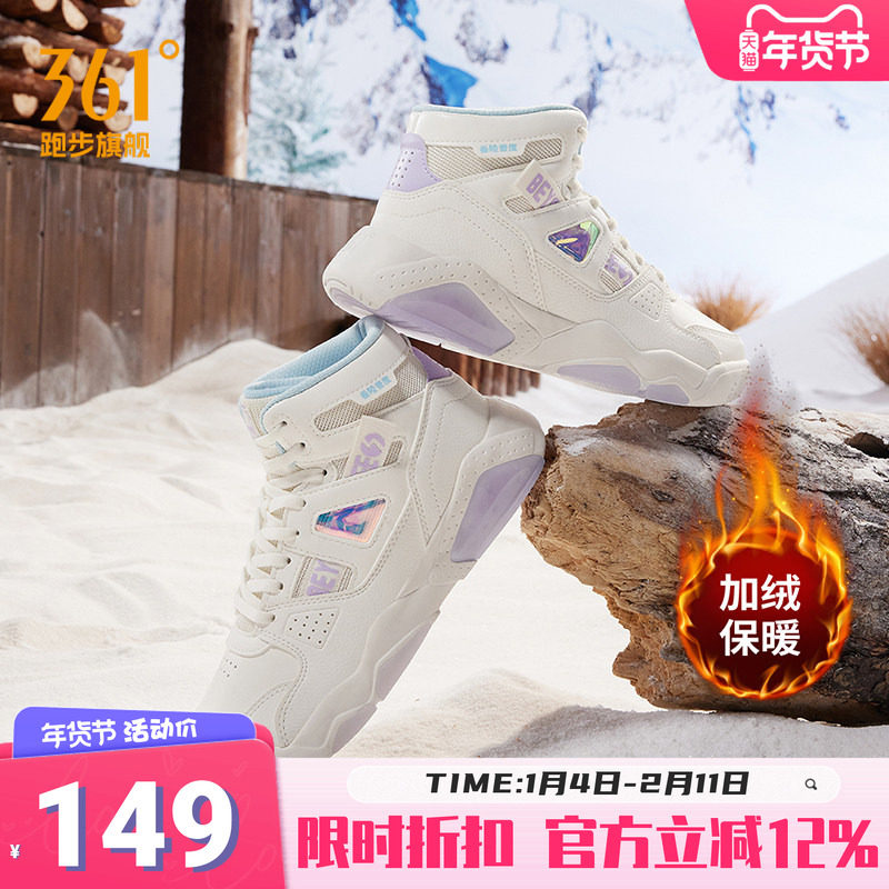 旗舰店361型燃板鞋女鞋2025冬季款加绒运动鞋女款高帮休闲棉鞋子小白鞋