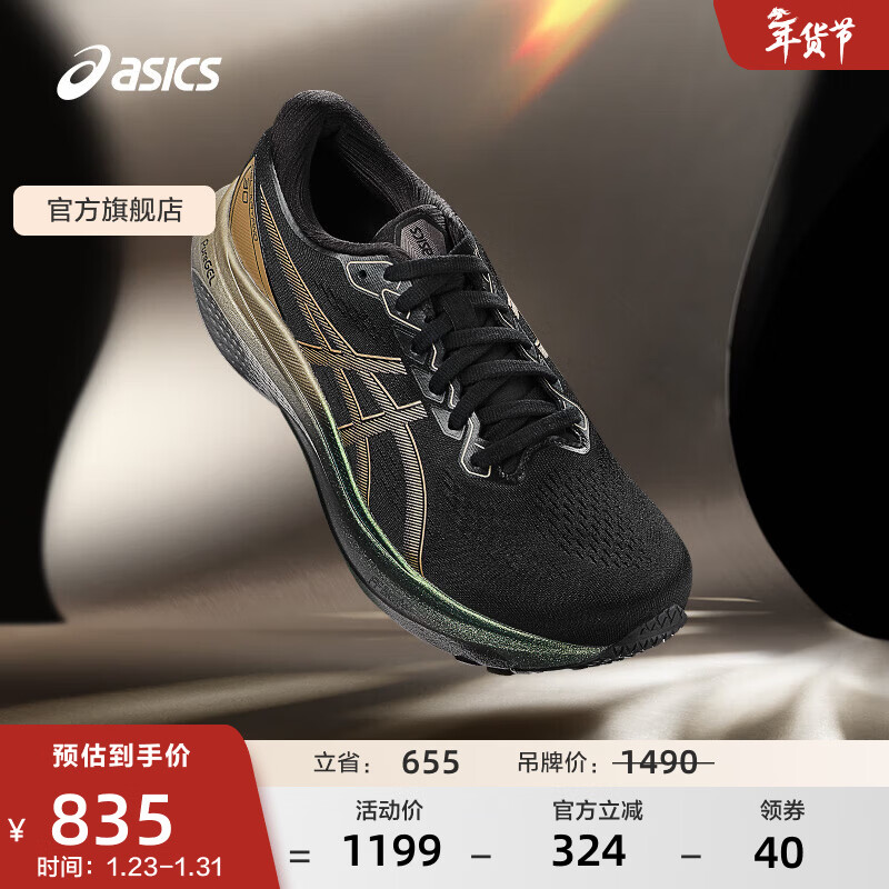 旗舰店亚瑟士ASICS跑步鞋男鞋稳定运动鞋支撑透气跑鞋 GEL-KAYANO 30 PLATINUM 黑色/米黄色 41.5