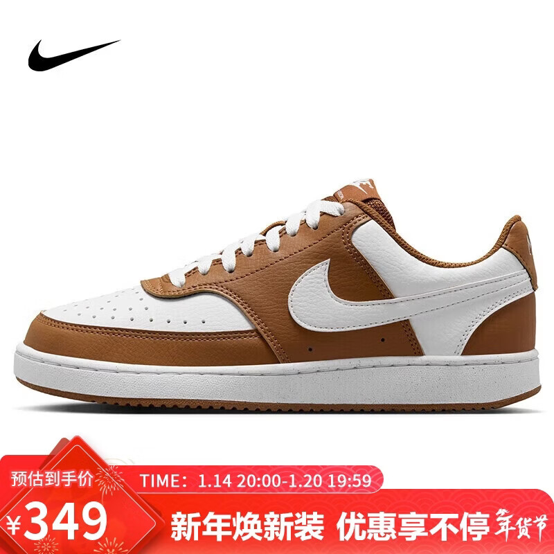 自营耐克NIKE休闲鞋女子减震COURT VISION LO运动鞋DH3158-200褐白36.5