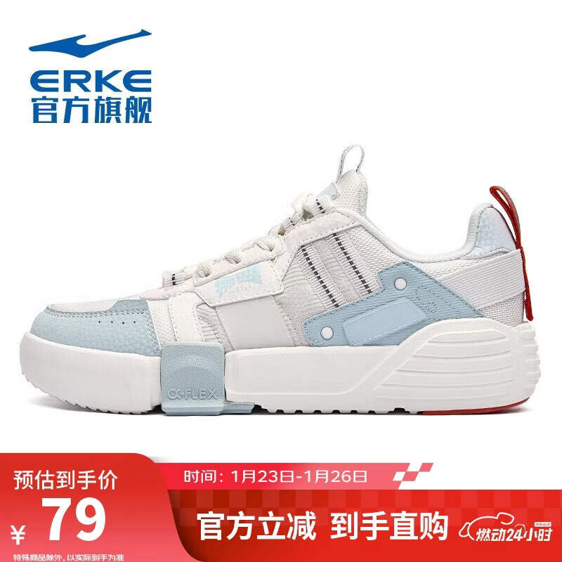 自营鸿星尔克女鞋板鞋女士轻便潮流滑板鞋学生休闲运动鞋【奇弹无双】板鞋 12122101508 微晶白/雾霾浅蓝 36