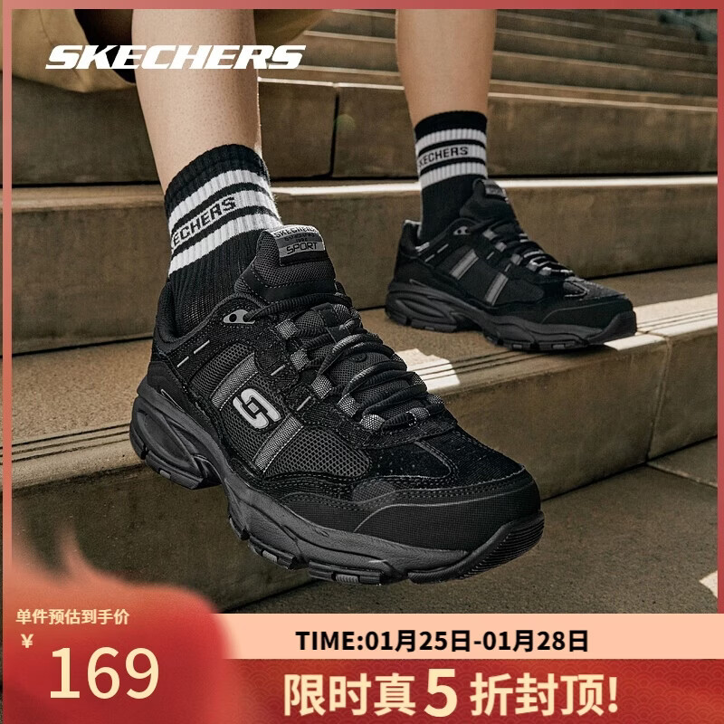 旗舰店斯凯奇(Skechers)奥利奥熊猫鞋丨老爹鞋女经典黑白复古秋冬轻便潮流增高运动休闲鞋 【女款】黑色/白-BKW 37