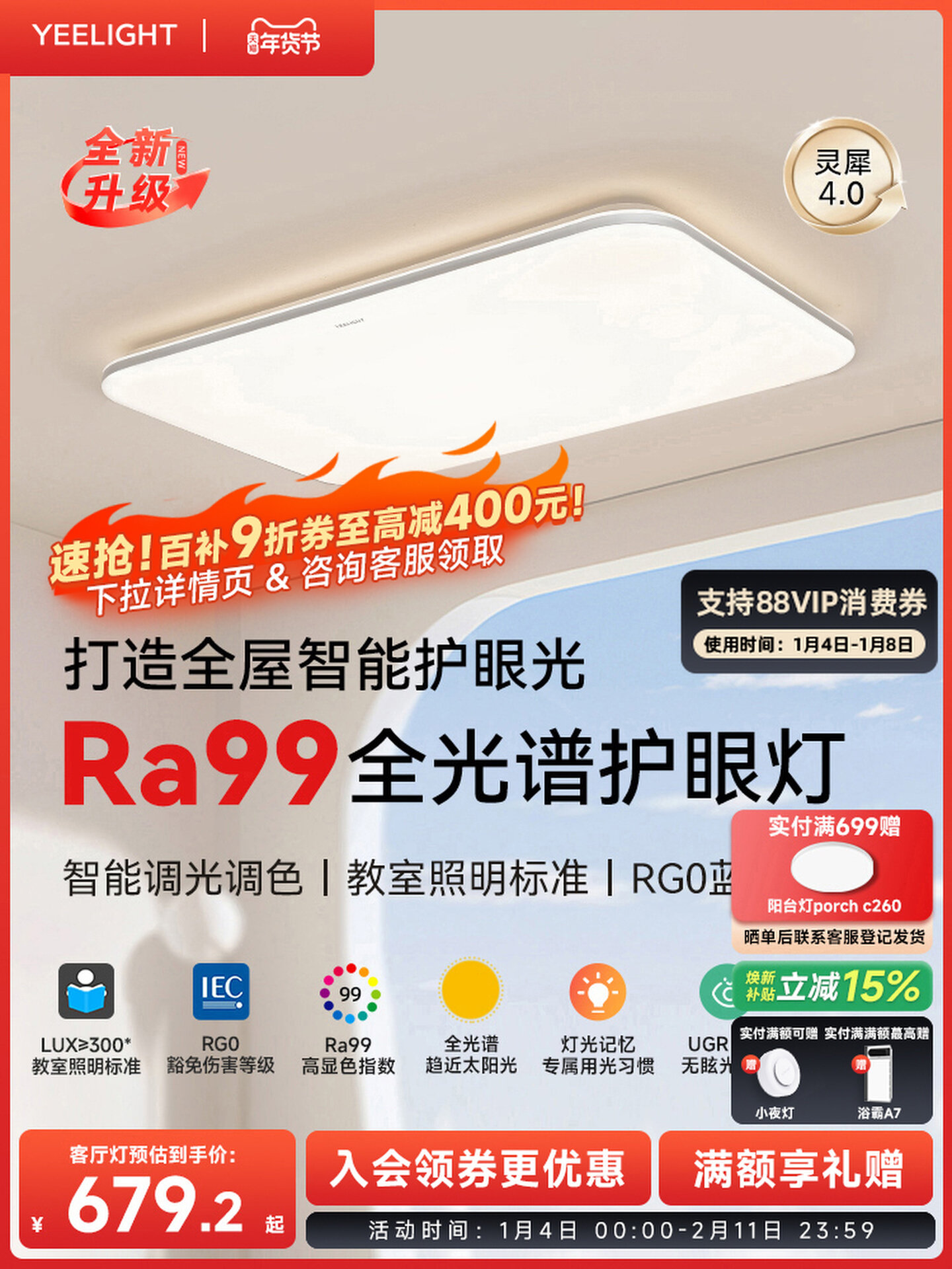 旗舰店yeelight易来全光谱高亮吸顶灯全屋简约大气灯具智能客厅灯灵犀