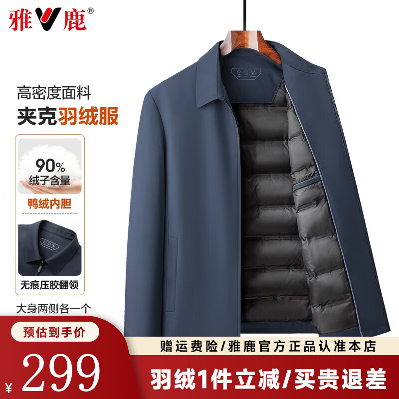 旗舰店雅鹿羽绒服男士2025秋冬季新款商务休闲鸭绒夹克防风保暖冬装短款外套 藏青色 XL (180)