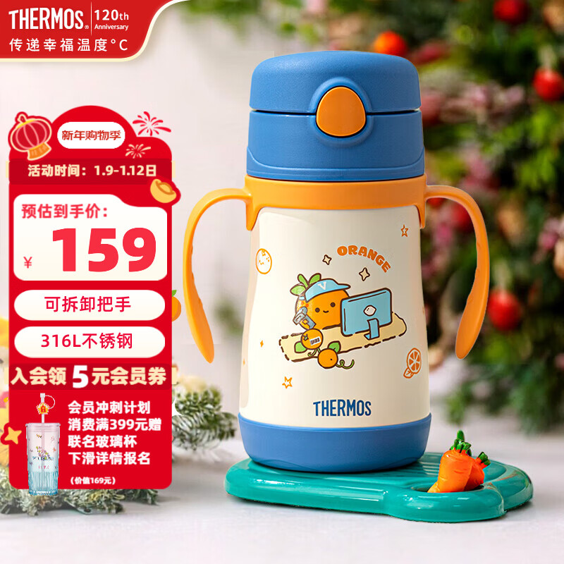 旗舰店膳魔师儿童吸管保温杯小容量畅吸杯不锈钢带把手幼儿园学生杯男女TCKC 【橙子】把手吸管杯 305ml
