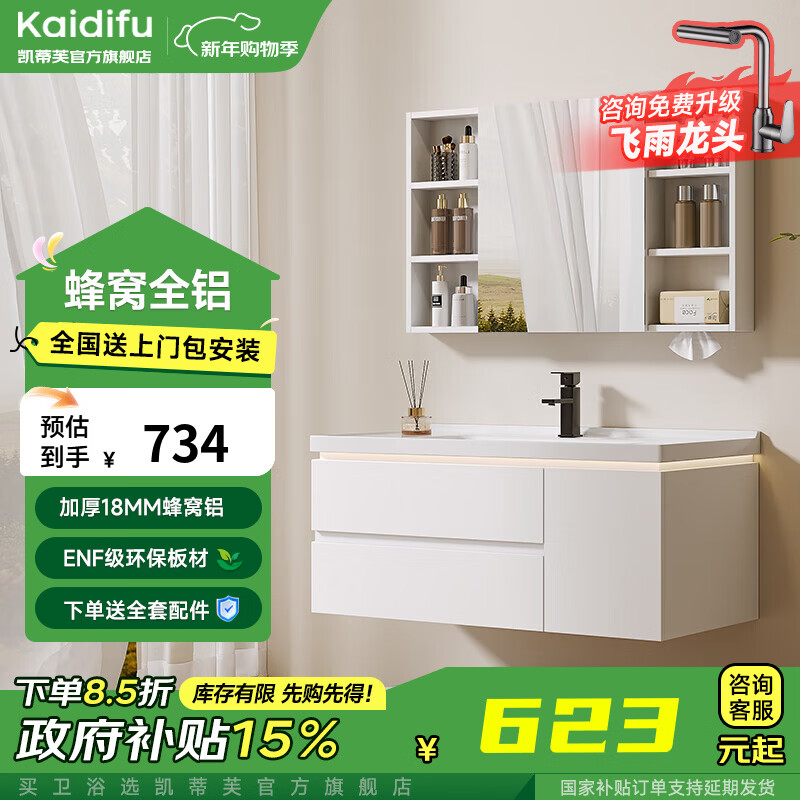 旗舰店凯蒂芙蜂窝铝浴室柜陶瓷一体盆洗手盆柜组合洗漱台卫生间太空铝浴室柜 61CM【普通镜柜】感应灯光 F201