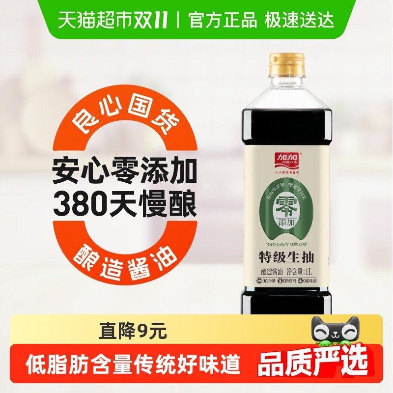 加加正品380天家用酿造零添加未加碘盐酱油特级0添加生抽