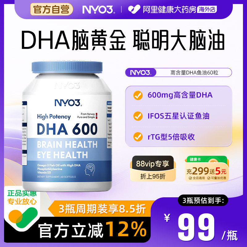 【直播专属】NYO3挪威DHA深海鱼油学生增强补脑记忆力omega3胶囊