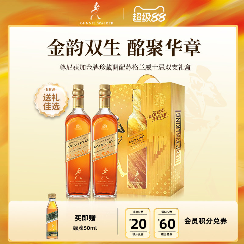 旗舰店【天猫独家首发】尊尼获加金牌威士忌金牌珍藏双支礼盒送礼佳选