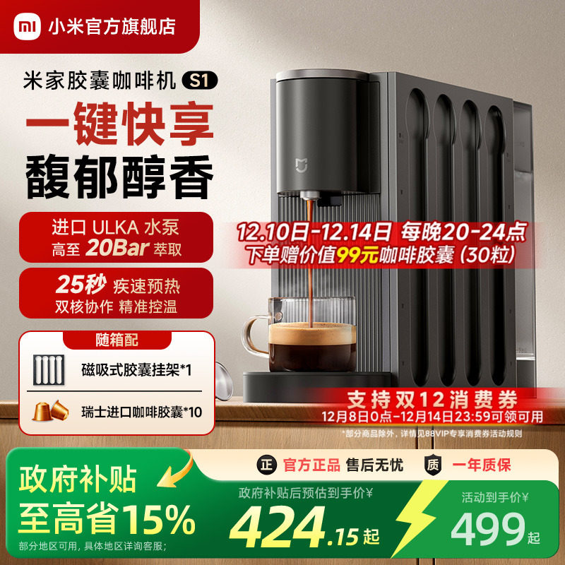 旗舰店小米官旗米家胶囊咖啡机S1家用办公小型全自动胶囊咖啡机