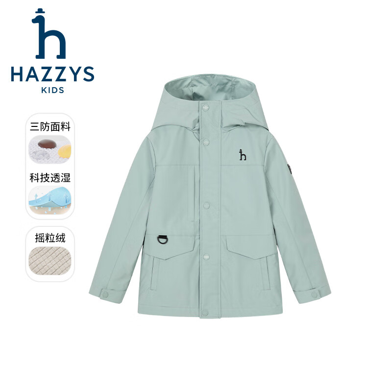 旗舰店哈吉斯(HAZZYS)童装男童风衣秋季新款三防透湿加绒连帽厚外套 天青色 145