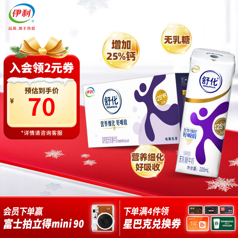 旗舰店伊利舒化奶无乳糖牛奶高钙牛奶220ml*24盒/箱 0乳糖低GI 早餐伴侣
